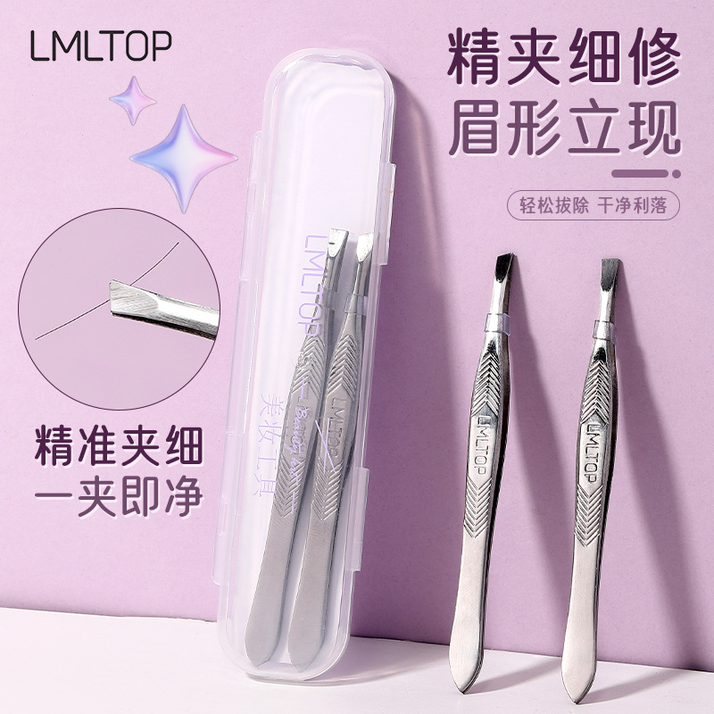 LMLTOP ステンレス鋼眉毛クリップフラット斜め眉毛プライヤー脱毛ピンセットつけまつげ補助クリップ YY668