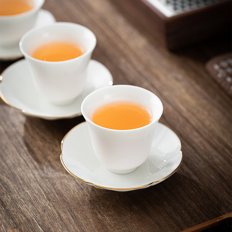 手作りの羊の脂の玉の磁器の杯は陶磁器の杯を敷きます。