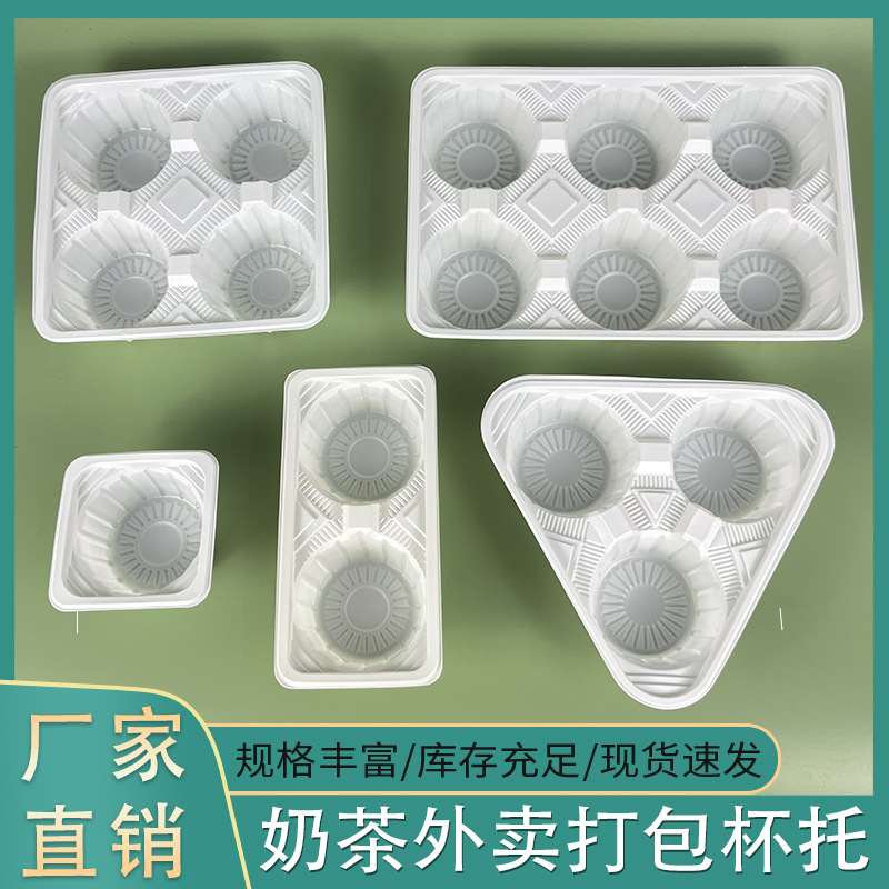 使い捨てミルクティーを厚くしてカップを梱包して、白い4杯のカップを持って、プラスチックのトレイを2杯持って、カップをこぼしないようにします