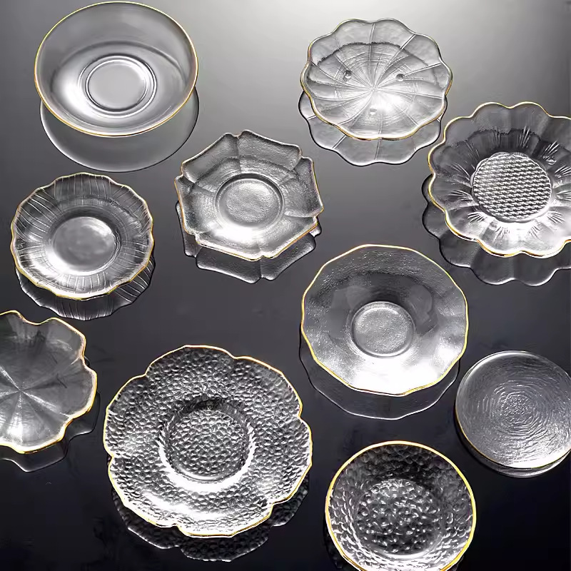 ハンマーガラス茶杯マット円形品茗杯マット断熱マット蝶子茶托工夫茶器茶芸茶道部品