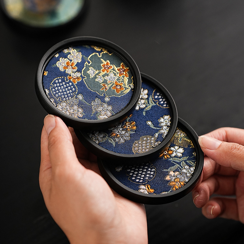 百花織錦吸水カップマットメラミンベース茶カップトートレトロカンフー茶道アクセサリー断熱マット茶トレーパーマ防止
