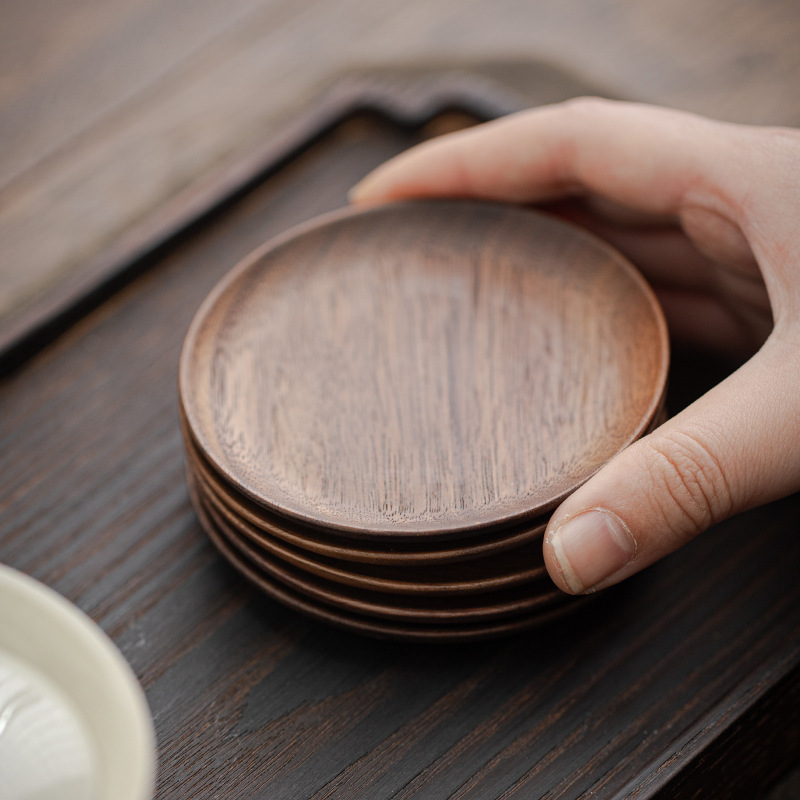 黒い胡桃の木のコースターのお茶のコースターの茶道の工夫のお茶の杯は茶托のアイデアの茶器の部品の木の断熱を頼みます。