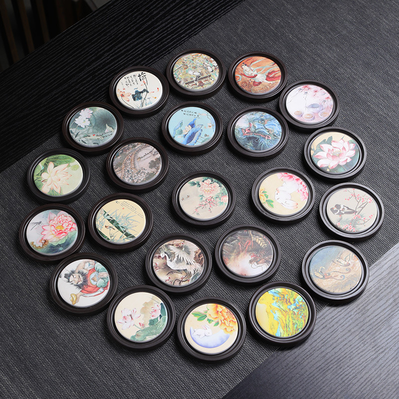 中国風電木吸水可能円形コースター断熱吸水パッド工夫茶器部品
