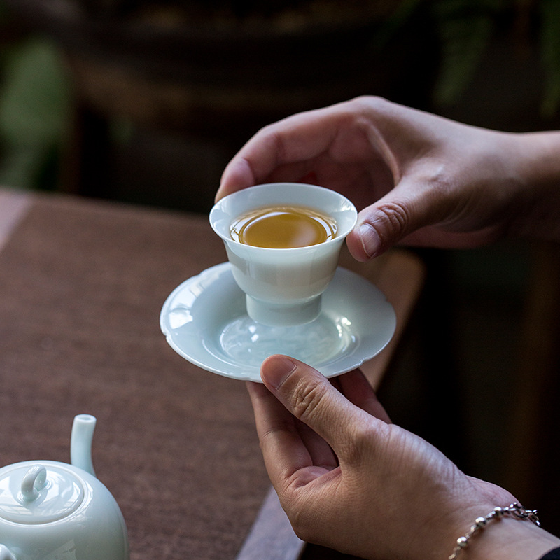 影青釉杯杯杯托陶磁器の工夫茶器日本式のシンプルな断熱マット家庭用茶皿トレーの茶道部品