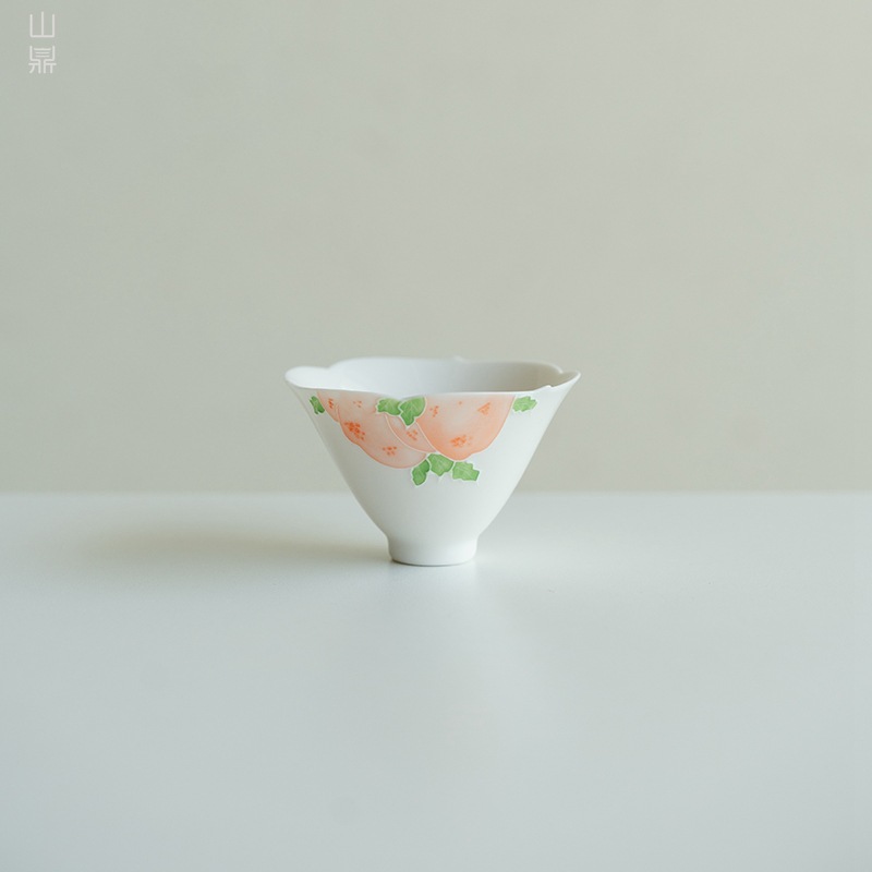 手描きの白い磁器の桃の闘笠の杯の杯の家庭用の工夫のお茶の器の主人の杯のつまみの花の高足の杯の泡の杯の客の杯