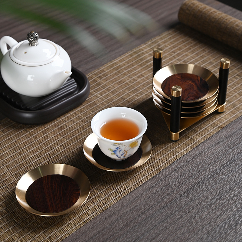 紫光檀実木純真鍮茶杯杯托茶托防熱茶マット会客高級茶器部品