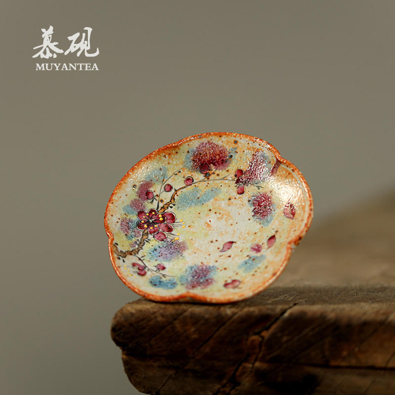 慕硯志野焼手作粗陶梅の小皿日本料理家庭用小菓子皿杯托柴焼コースター