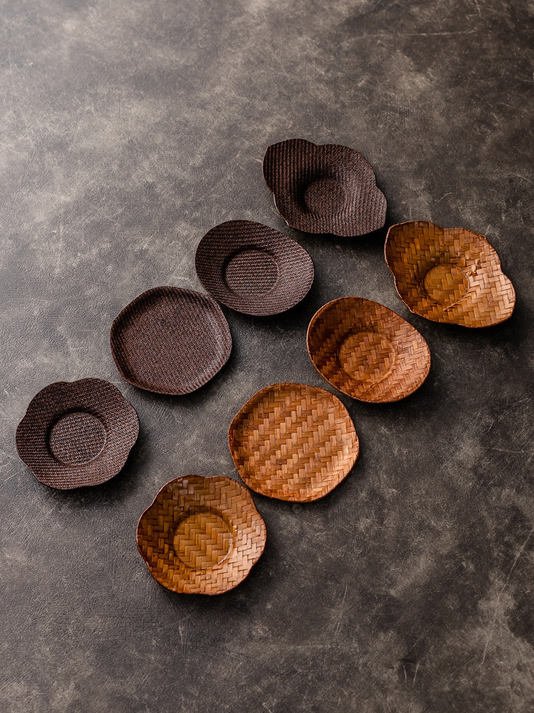 手作りの竹編みの杯托の大きい漆の藤編みのコースターの壺は断熱パッドの新しい中国式の禅意の工夫の茶道の茶器の部品を承认します。
