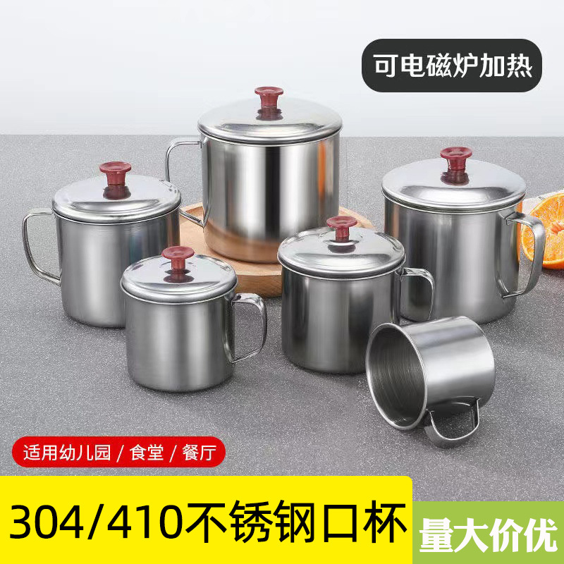 メーカー直供304ステンレスカップ家庭用成人蓋付きコップ幼稚園ハンドル付きカップ