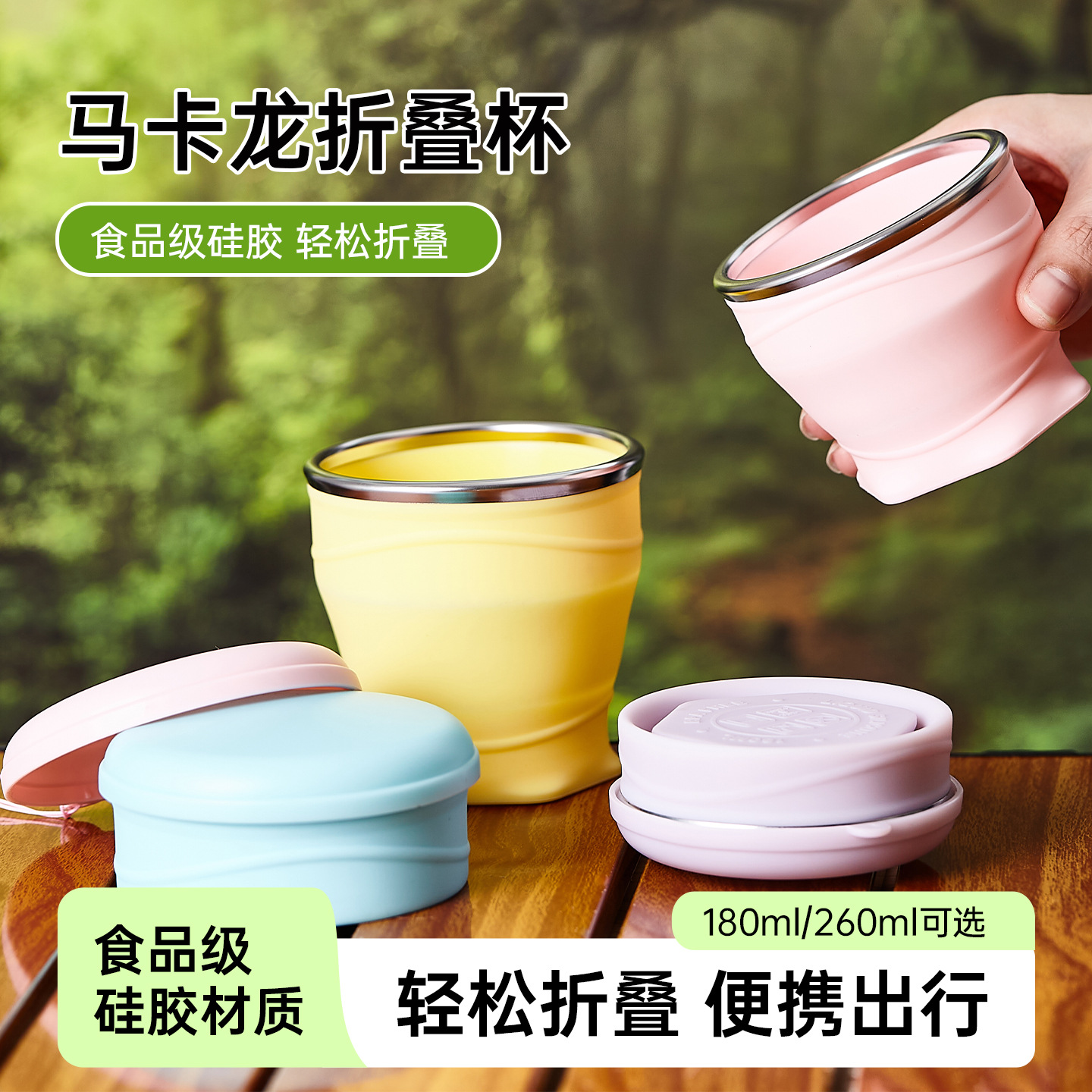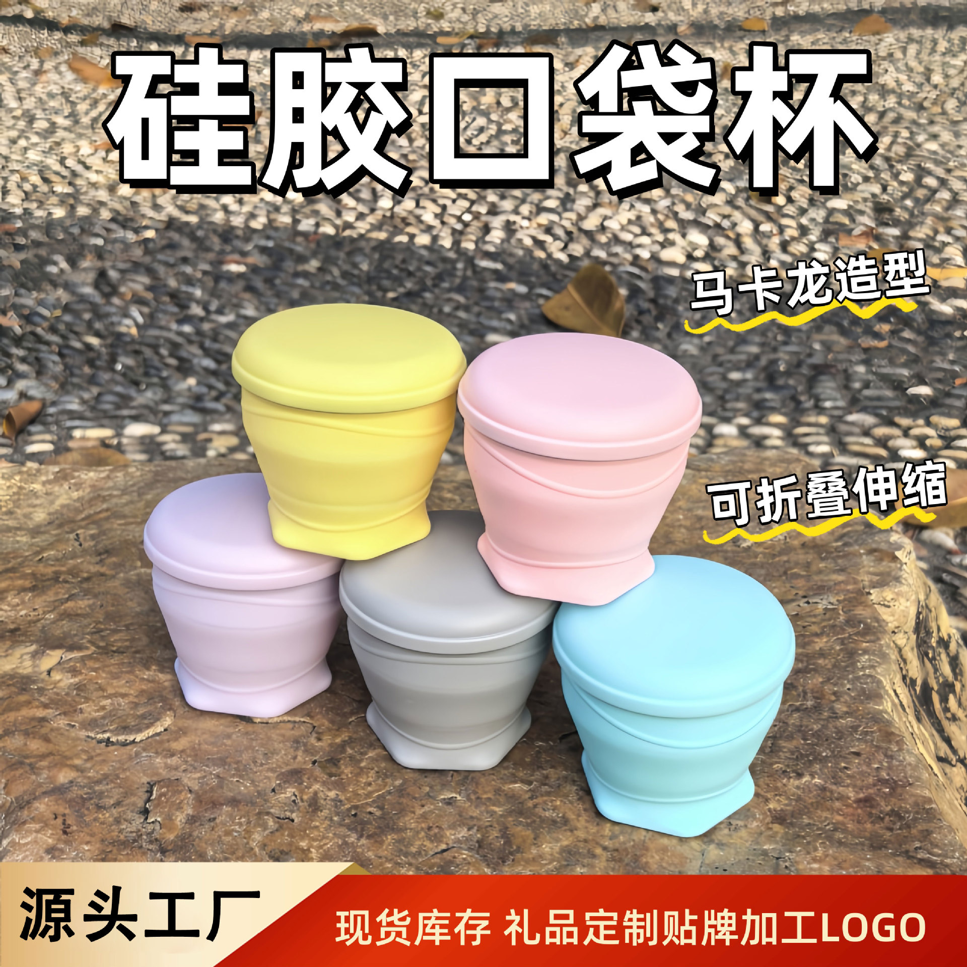 原厂爆销旅行便携挂绳杯折叠cup多功能硅胶水杯马卡龙随手杯