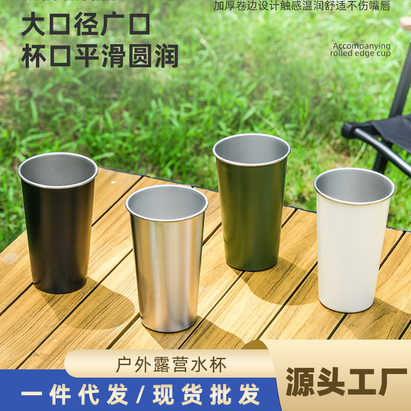304 食品グレードのステンレス鋼単層カーリングビールカップ屋外キャンプコーヒーカップ家庭用カップハンディウォーターカップ