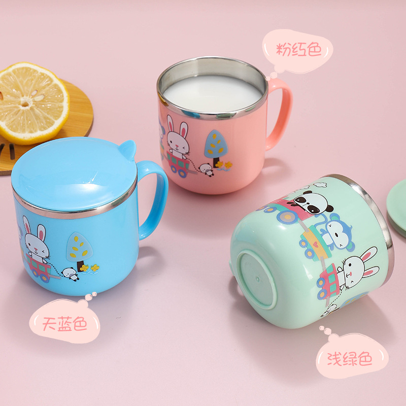 2023小紅本同金304ステンレス子供コップ水飲みカップ幼稚園アニメカップ蓋付き牛乳