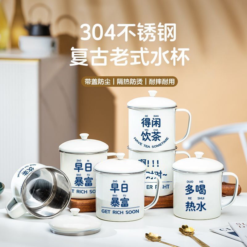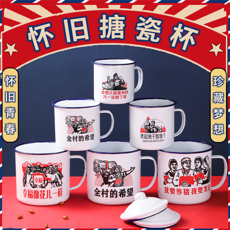 ノスタルジックなクラシックなエナメルカップ蓋付きティージャー大容量ティージャーホテル昔ながらのマグカップレトロウォーターカップ工場