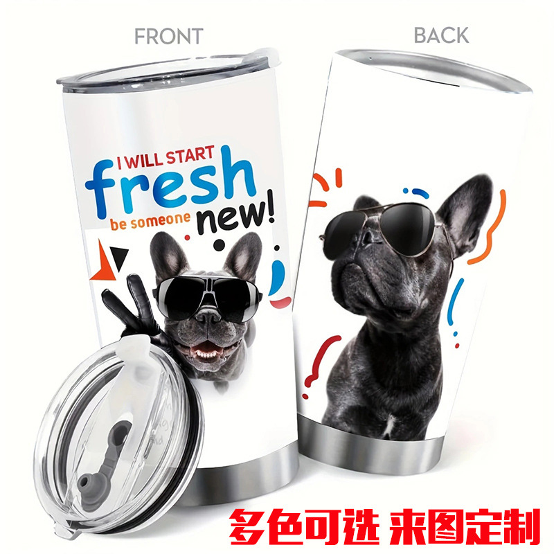 20オンスステンレスストローカップスプレー二重保温自動車コーヒーカップ彫刻パターンカスタマイズ