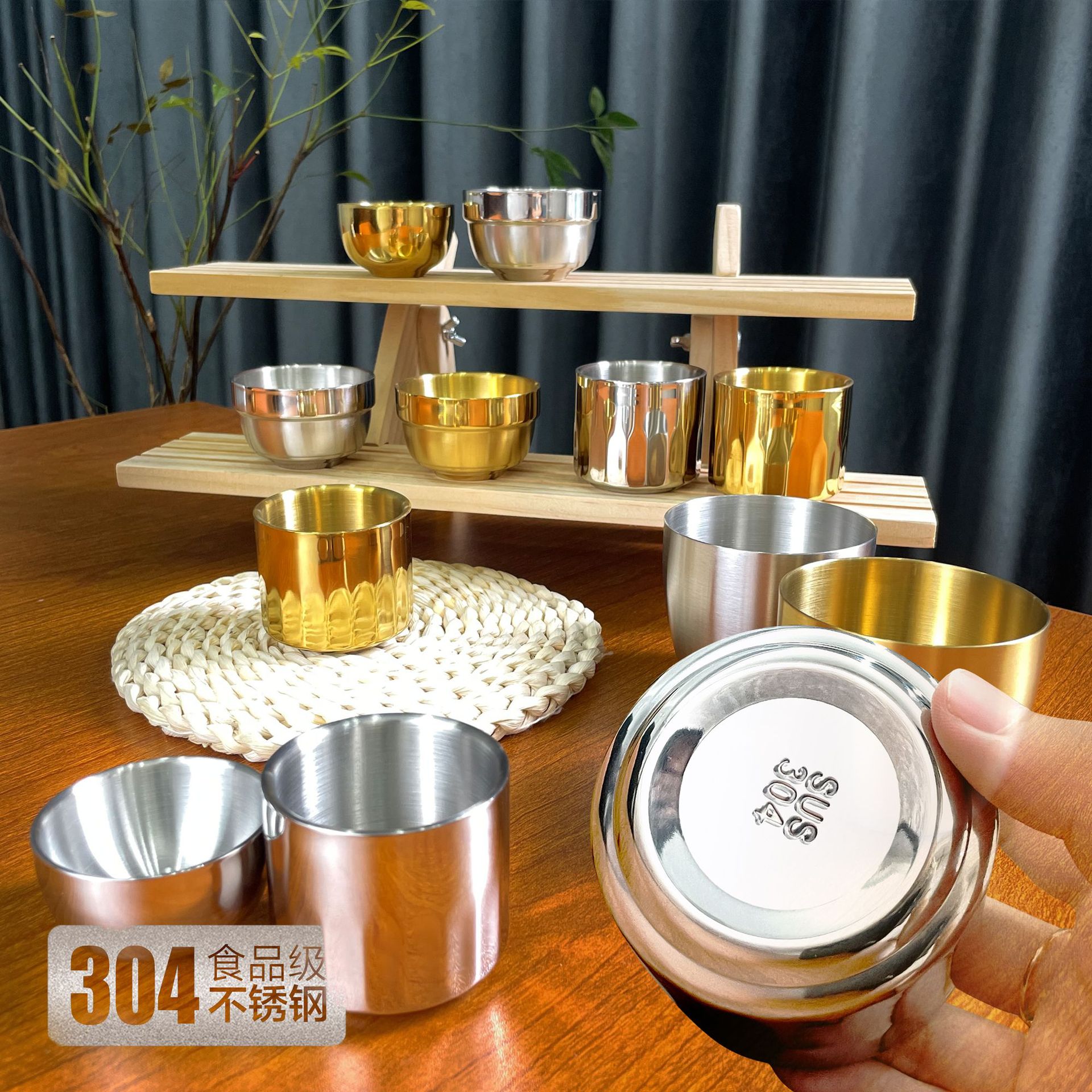 304ステンレスカップカップカップ韓国カップ金色カップホテル飲食専用カップ高級2杯