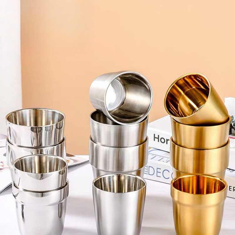 304 ステンレス鋼二層ウォーターカップバーベキューレストランビールカップホテル小さなティーカップ飲料カップ韓国ケータリングカップ