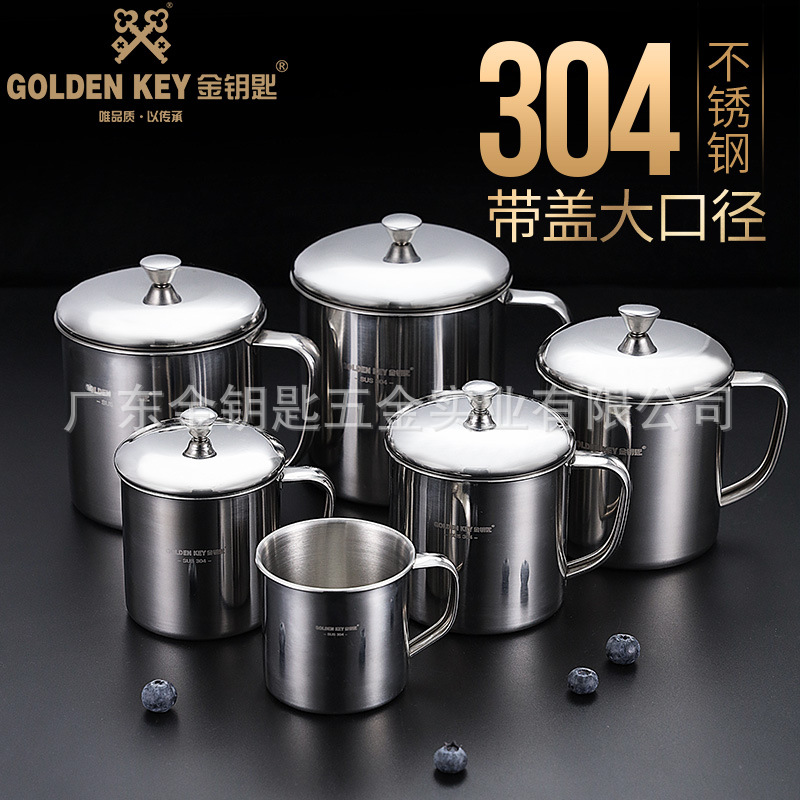 金の鍵304ステンレスのコップは蓋の取っ手を持っています。家庭用のコップを飲みます。