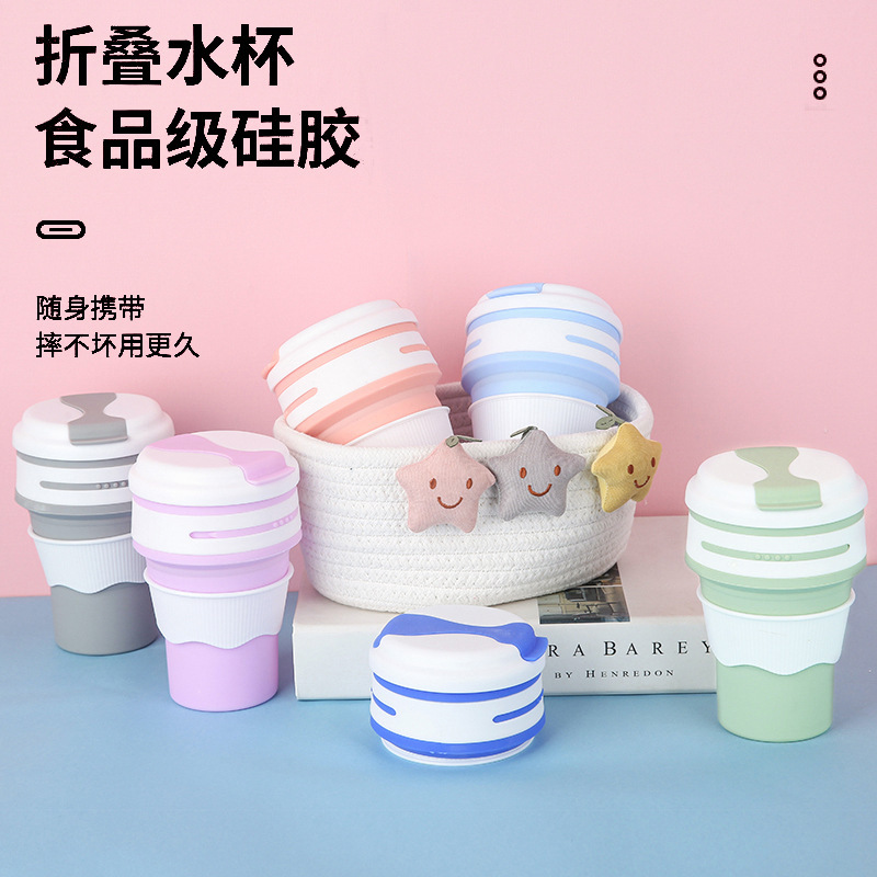 屋外旅行携帯シリコン折り畳みカップ伸縮圧縮水筒旅行カップストローカッププレゼントカスタマイズ