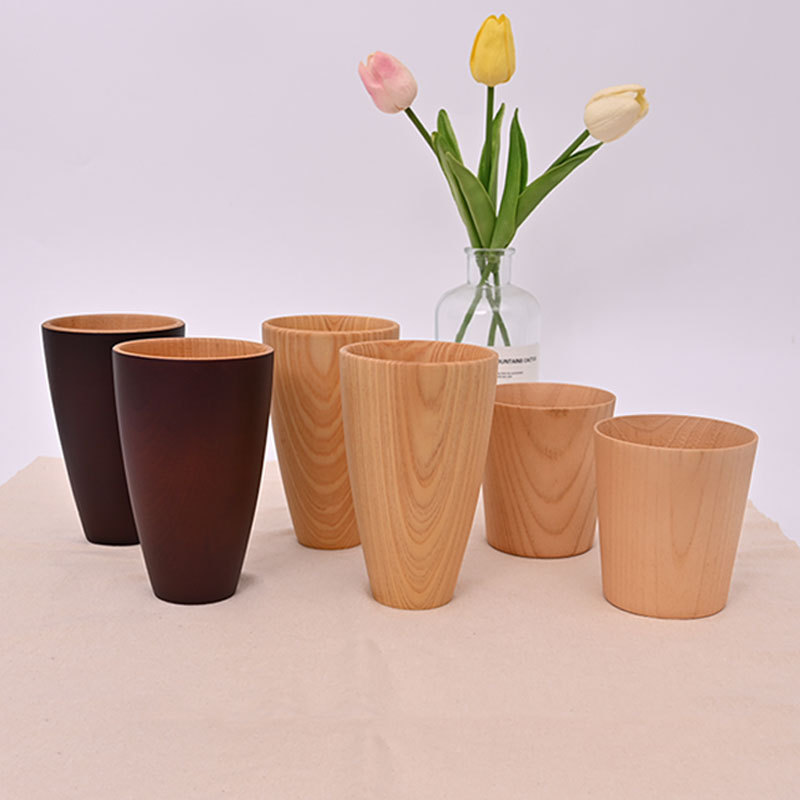北欧風耐熱無垢材水筒、ゴム材コーヒーカップ、クリエイティブミニティーカップ、木製キャンプカップ、携帯カップ
