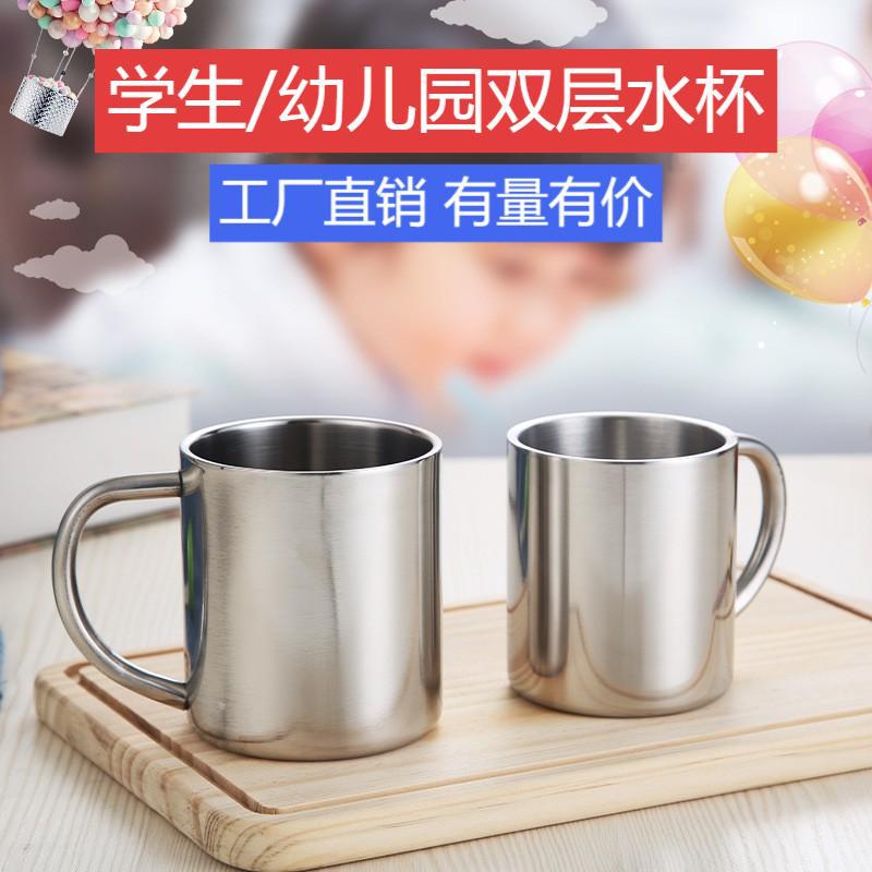 工場幼稚園のコップ304ステンレスのコップの学生の子供の熱いコップの二重のレストランのコップは字を彫ります。