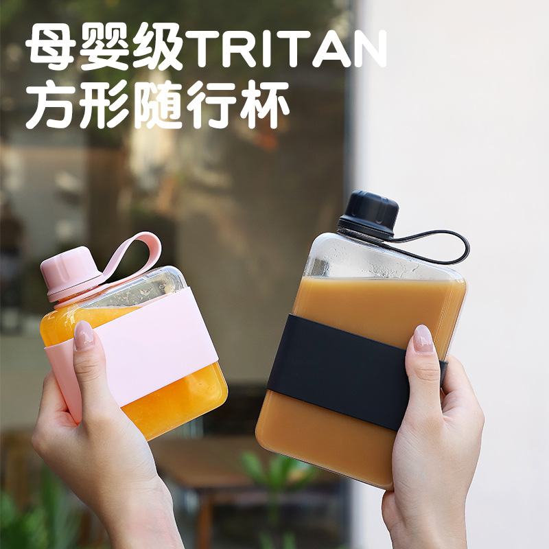 新型tritan小清新手提げフラットポットシリコンカバープラスチックカップ高颜値学生携帯コップ
