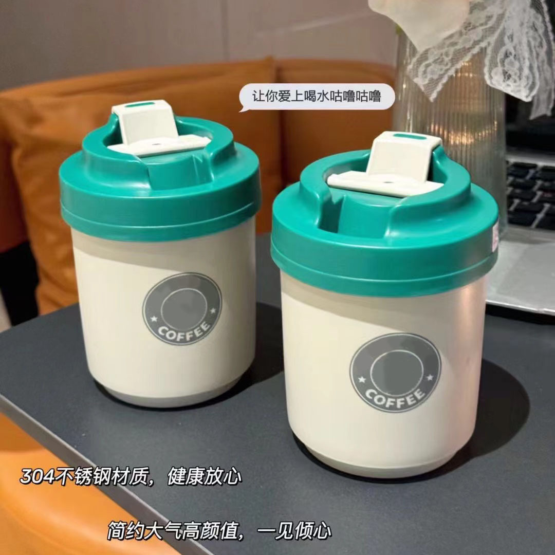 304ステンレスカップ家庭用女子学生高颜値カップ大容量携帯ストローカップ学生保温カップ