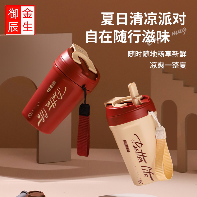 ネットセレブ人気の直飲みカップ 304 ステンレス鋼魔法瓶カップ、ロゴを印刷できるポータブルロープ付きの見栄えの良いカップ