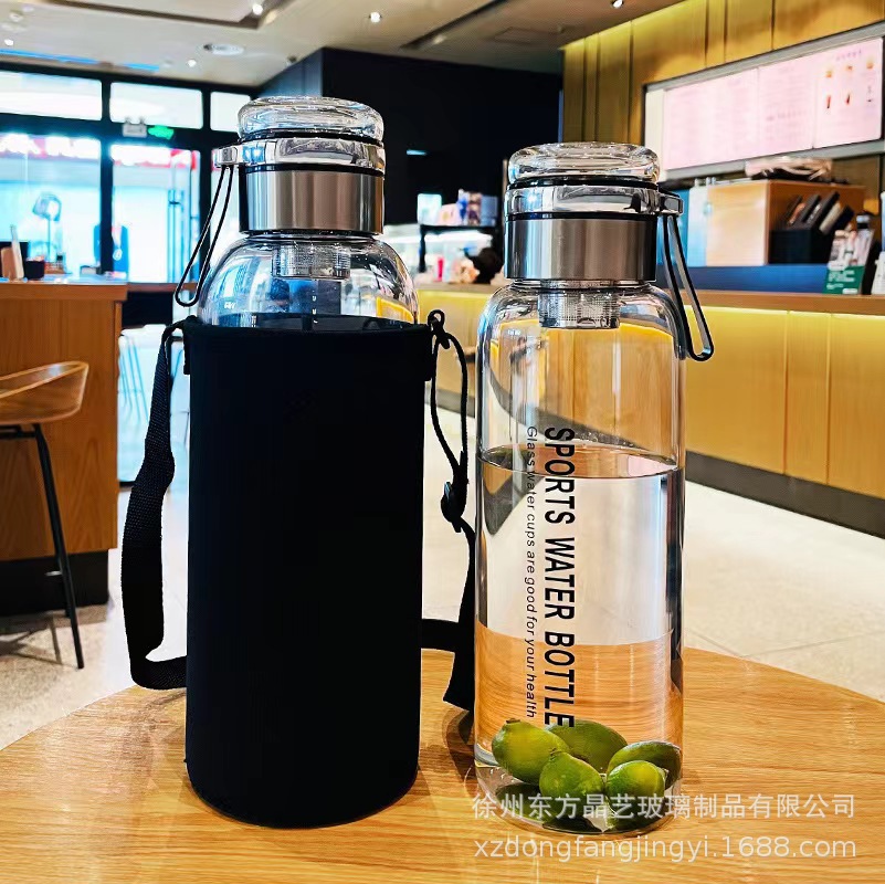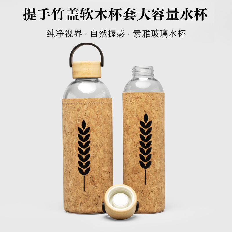 提手竹盖软木杯套玻璃水杯大容量运动杯户外便携水瓶多功能分装杯