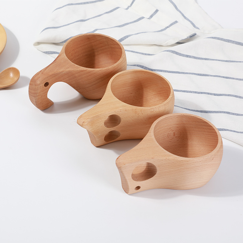 ケヤキのコップはハンドル付きで、ミルクカップのコーヒーカップの木製北欧フィンランドカップの屋外キャンプカップです。