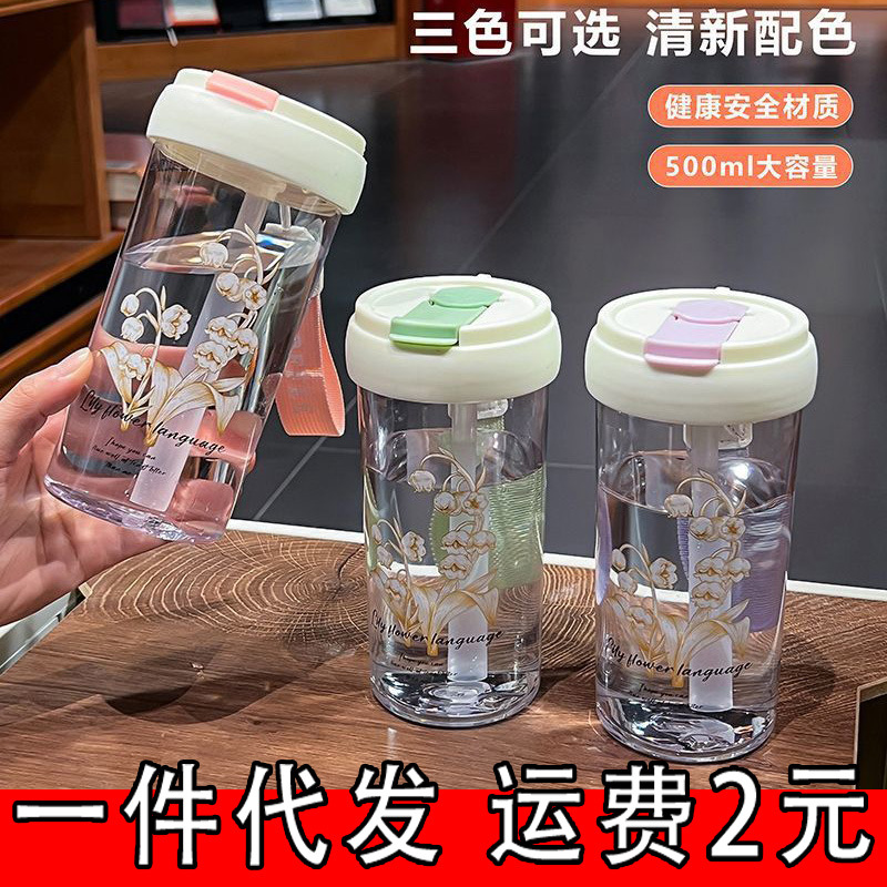 Ins高颜値プラスチックカップ高温防止携帯カップ学生シンプルでフレッシュなカップとお茶漏れカップ
