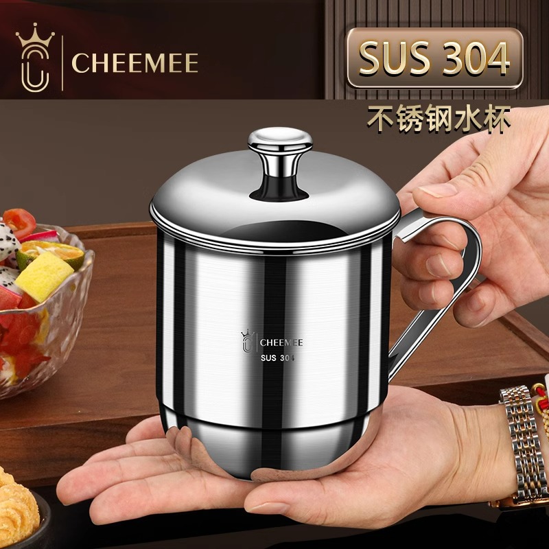 304ステンレスカップティーポット食品級厚手蓋付きカップレトロ古いカップ大容量カップ