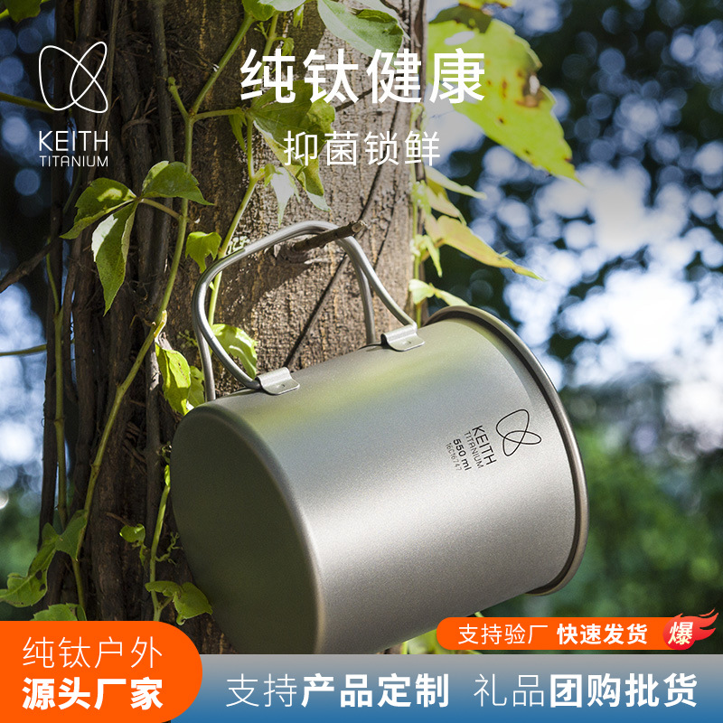 KEITH 純チタンウォーターカップ アウトドア キャンプ ポータブル キャンプ チタンカップ 単層沸騰水折りたたみマグ コーヒーカップ