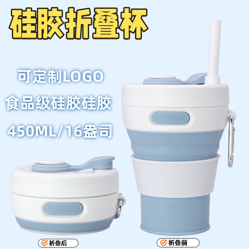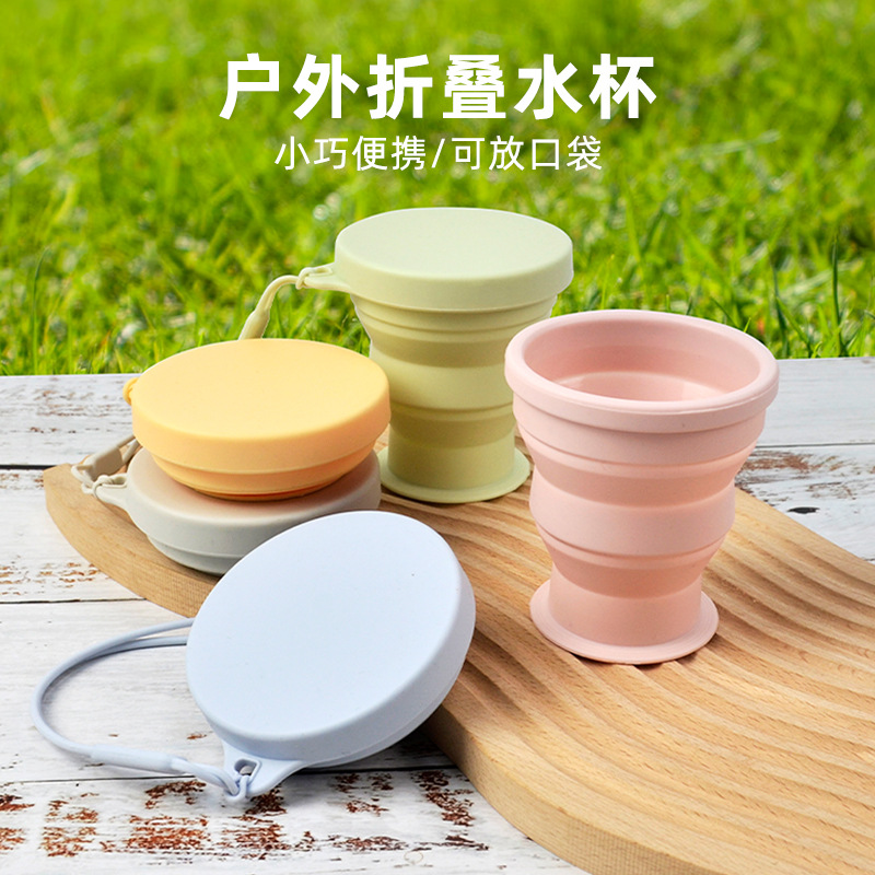 屋外旅行携帯シリコン折り畳みカップ伸縮圧縮水筒旅行カップストローカッププレゼントカスタマイズ