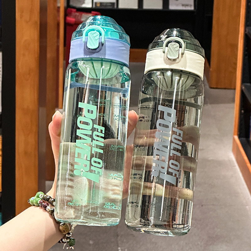 高颜値スポーツ水カップ大容量プラスチック夏学生ストロー付き水筒男性目盛転倒防止ロック付き