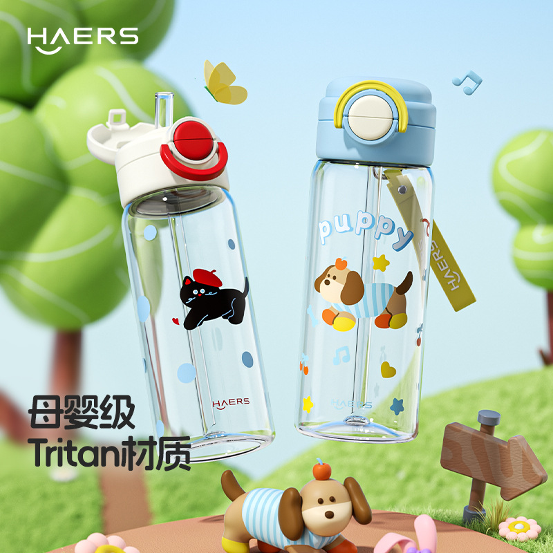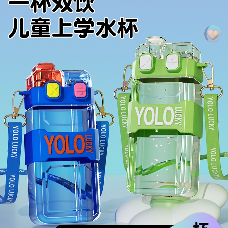 儿童水杯2025新款男生便携双饮吸管男孩小学生上学壶塑料杯子