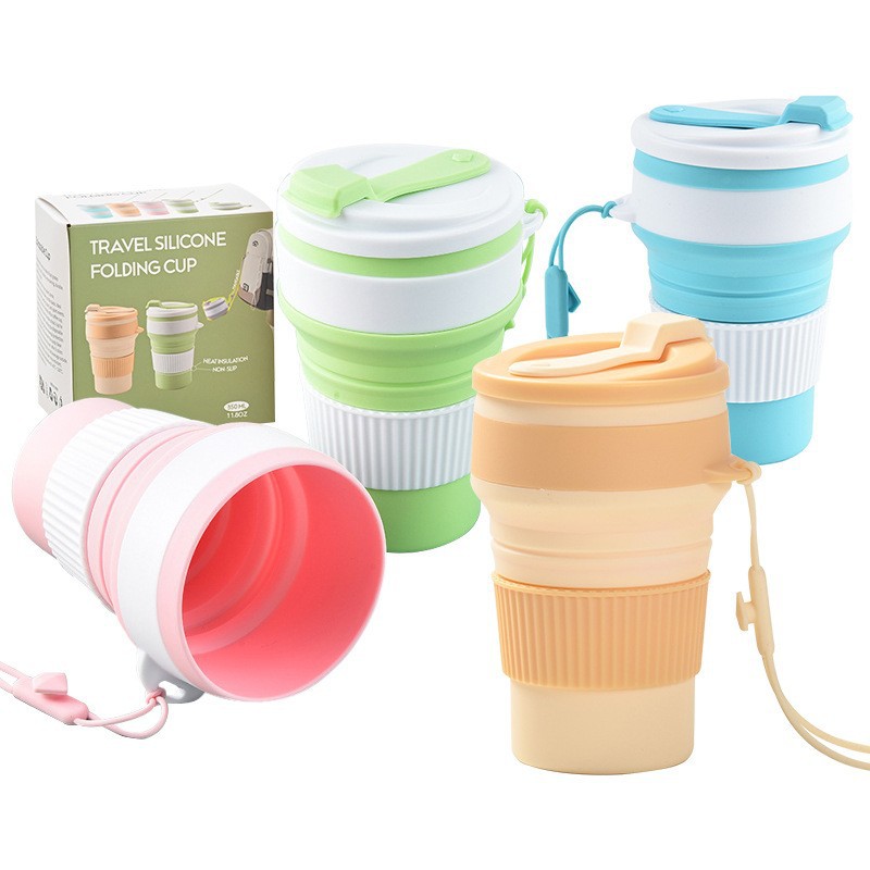 戸外シリコンコップ折り畳み伸縮旅行カップひも付き350ml便利な耐高温カップ