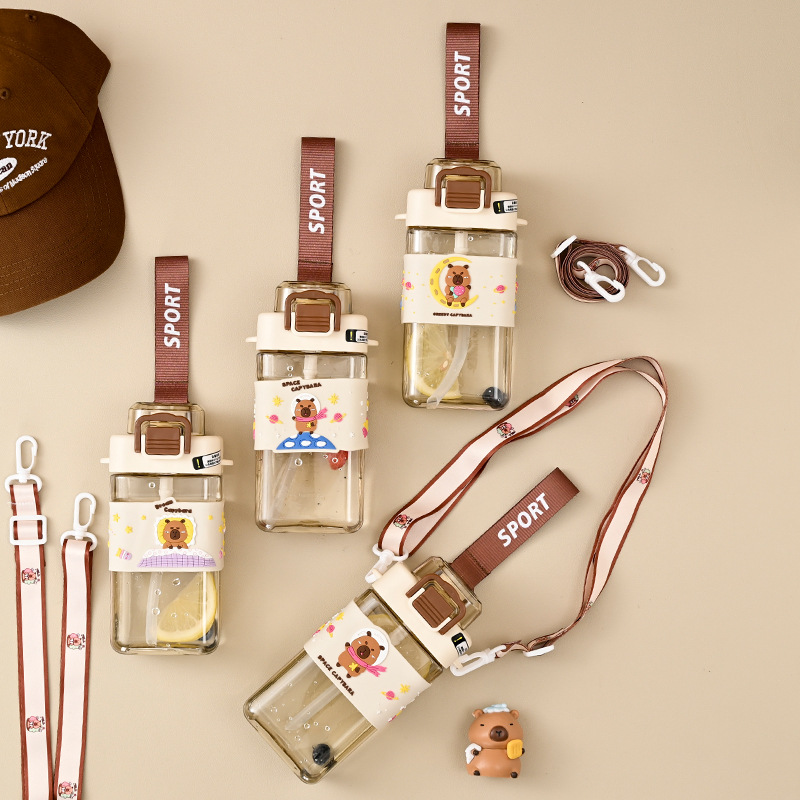 新商品のカピバラのストローカップの高顔の値は跳んで子供の学生のコップのかわいい漫画のベルトのついているコップに弾きます。