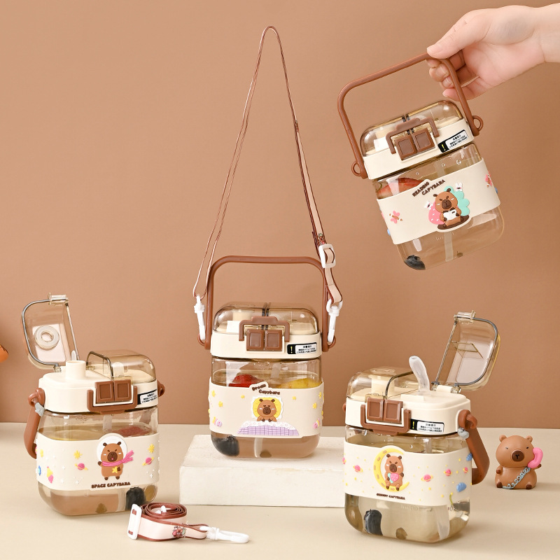 新型のカピバラの二重の飲み物の角の杯の漫画の高い顔の値は学生の子供のコップを背負って携帯してすぐにコップを持ちます。