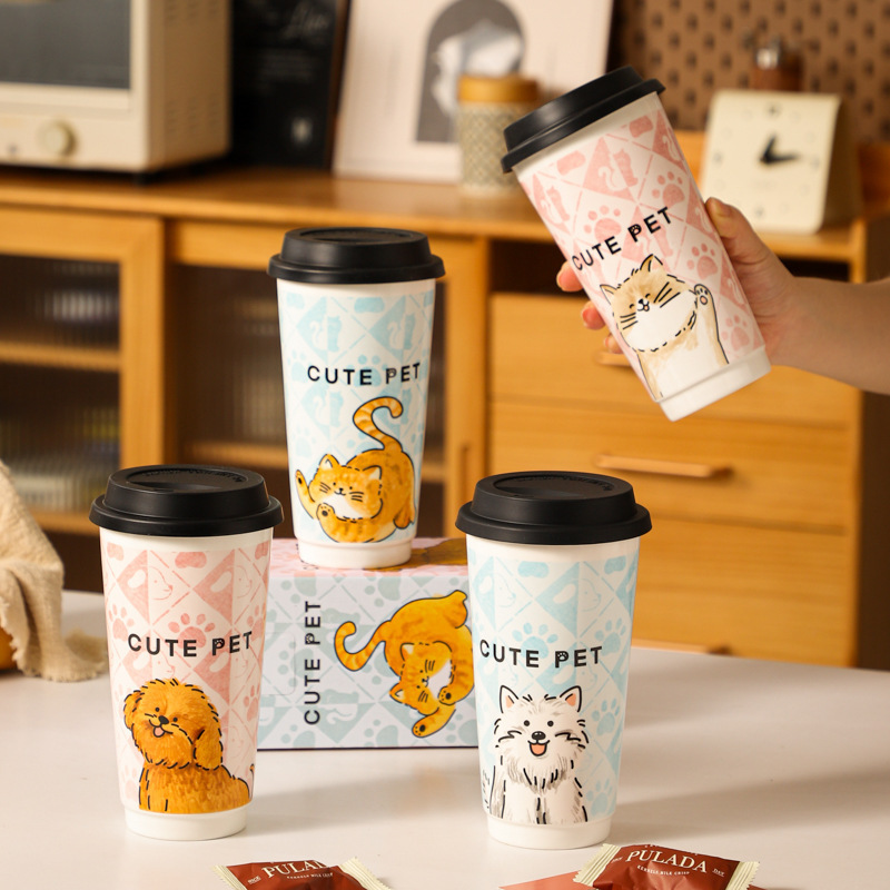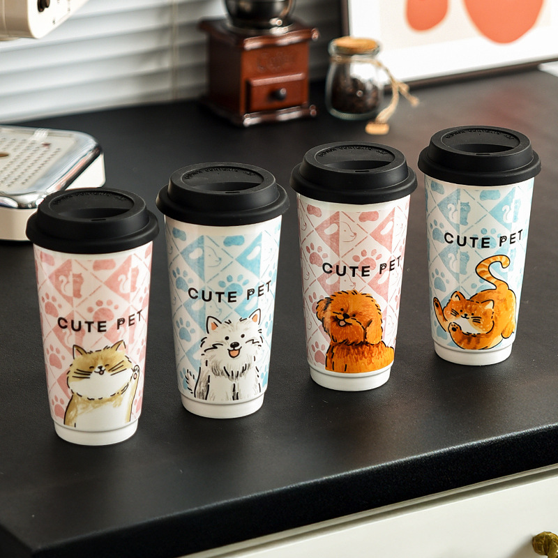 子猫と子犬のハンドカップ、ハイカップ、蓋付きミルクティーカップ、セラミックお土産、女の子カップルコーヒーカップ、学生ウォーターカップ