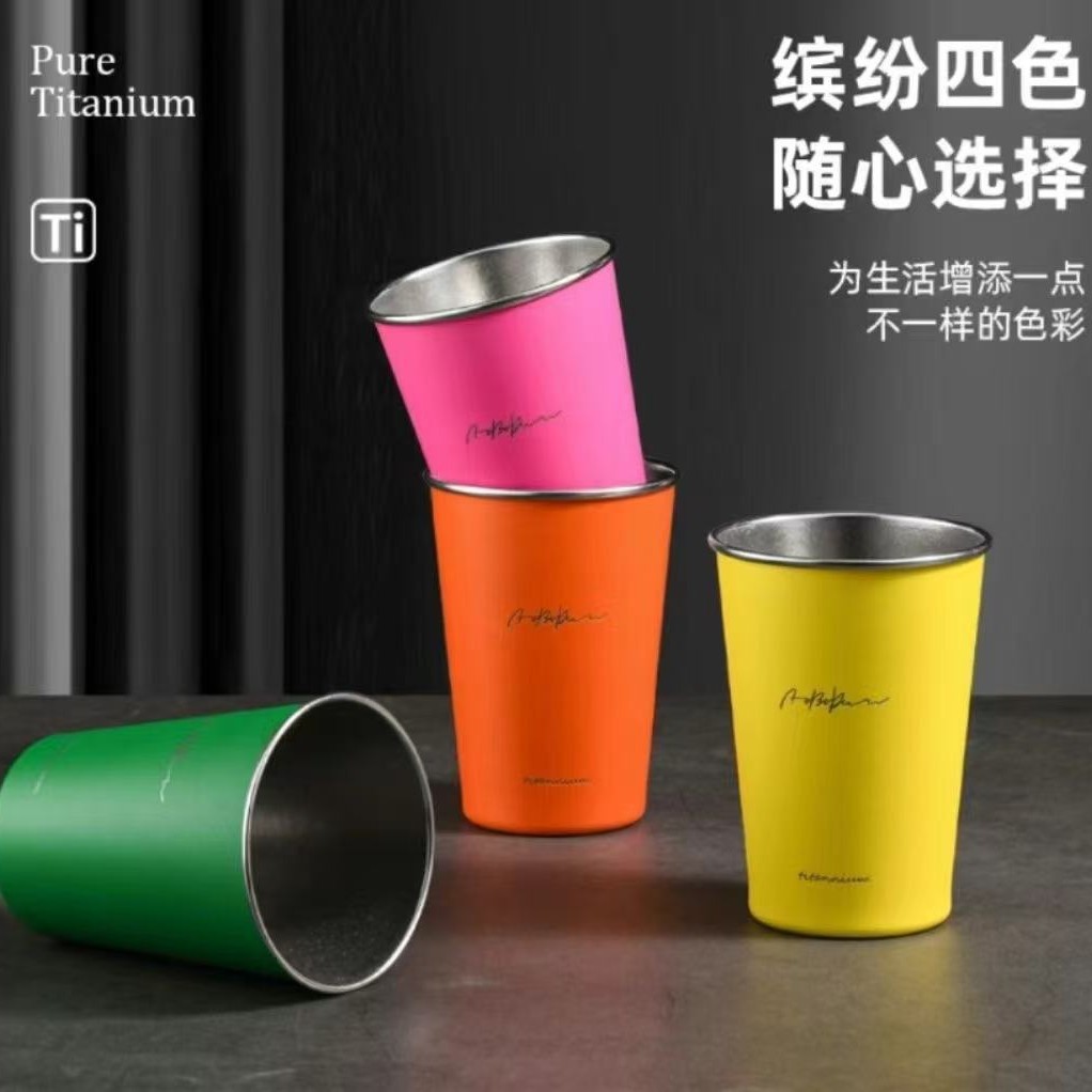 純チタン製ウォーターカップ アウトドアキャンプ用チタンカップ シングルレイヤー冷飲カップ マウスウォッシュカップ チタン合金 夏用ビール携帯用