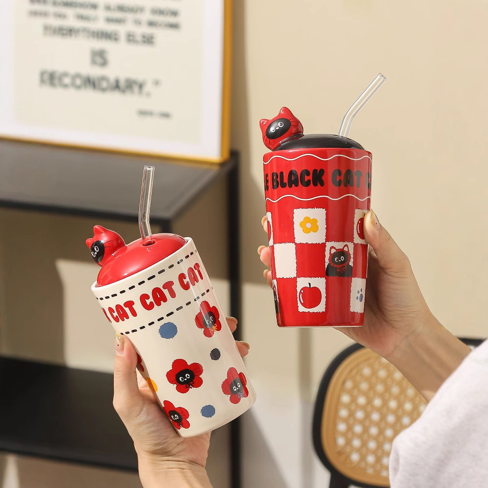 かわいい子猫の陶磁器の杯のついでにコップの高い顔の値のストローの杯の誕生日の贈り物のお土産の家庭用学生はコップを飲みます。