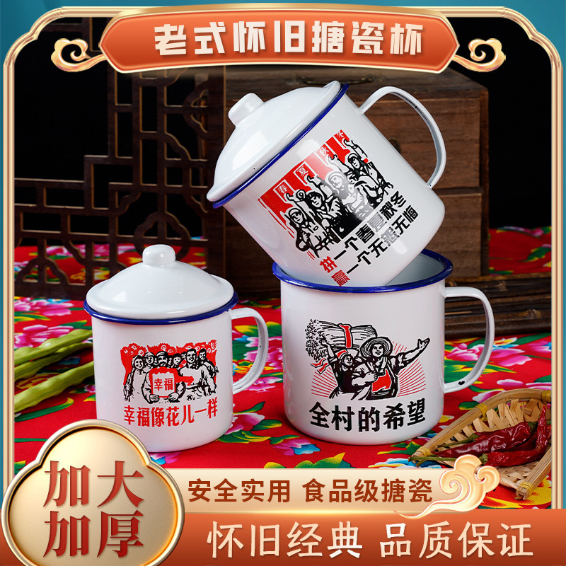 ノスタルジックなクラシックエナメルカップ蓋付きティージャー大容量ティージャーホテル昔ながらのマグカップレトロウォーターカップ