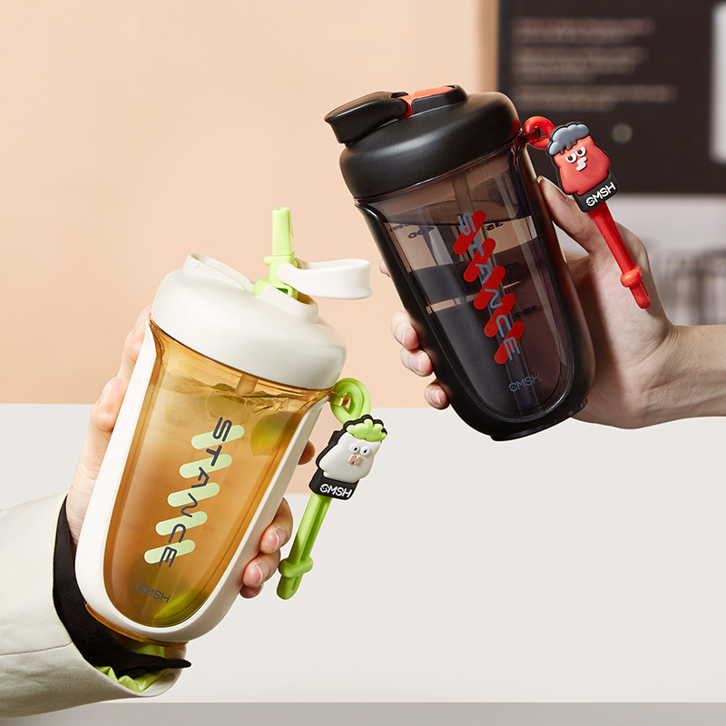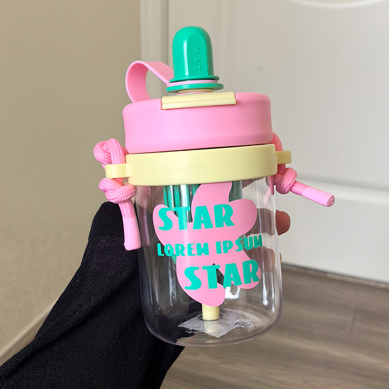 プラスチックコップ高颜値コップ携帯水筒児童創意男子学生二重水筒夏ストローコップストラップ