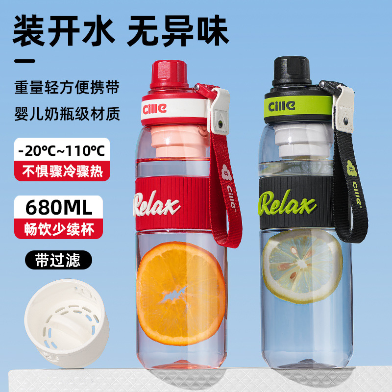 希楽プラスチックコップ大容量携帯耐高温透明男女学生夏アウトドアスポーツ水筒新型