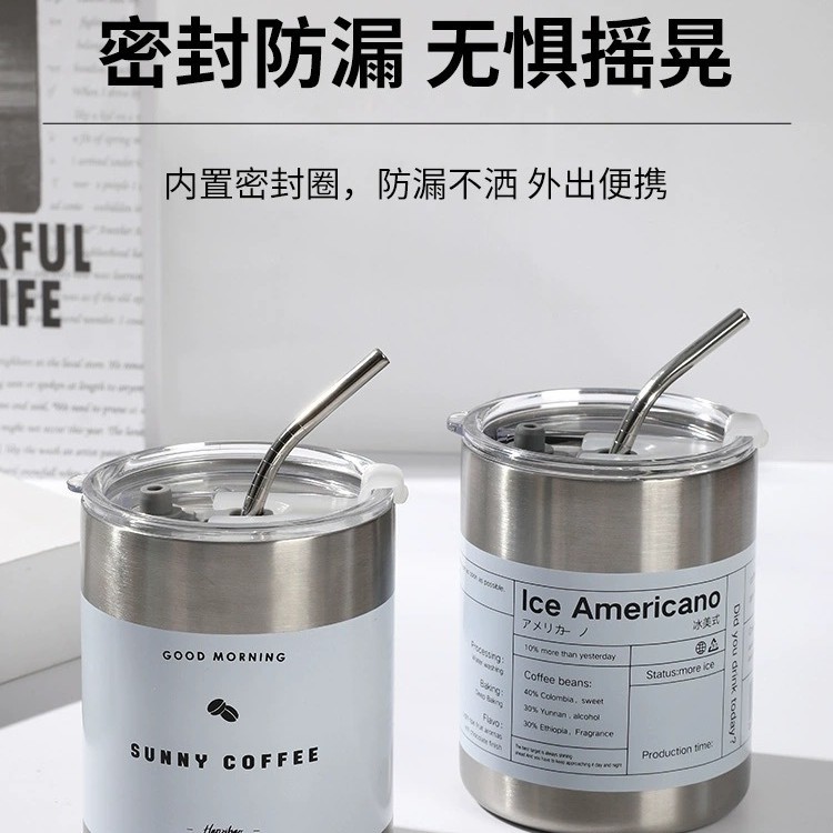 ステンレスコーヒーカップ携帯随行事務室ストローコップ大容量保温カップ2024新型卸売り
