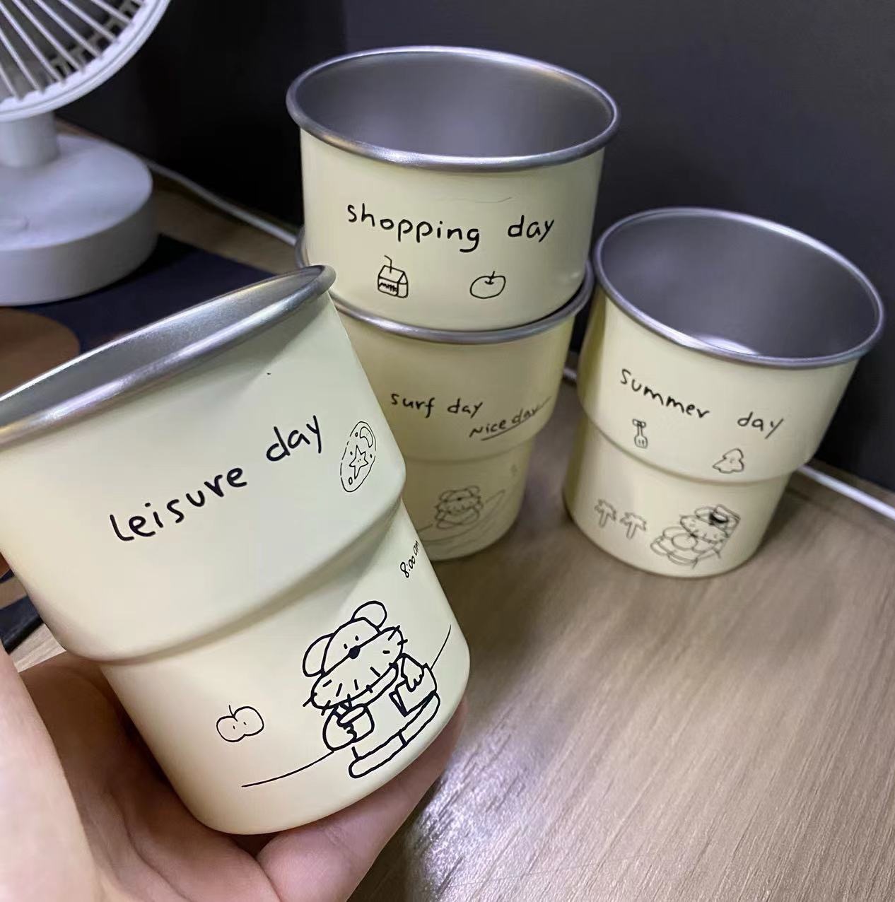 かわいい漫画修理犬キャンプカップ子犬落書き旅行カップステンレスピクニック飲料カップ手握りカップ卸売り