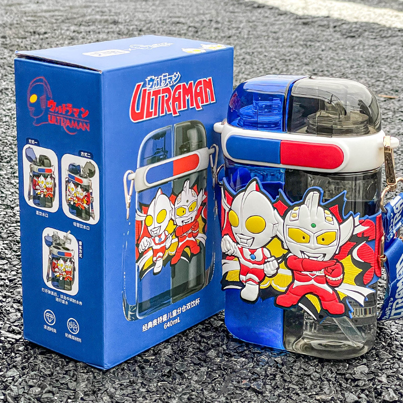 ウルトラマン子供用コップ通学専用tritan材質ダブルドリンクカップはストロー付きです。耐高温防止水筒です。