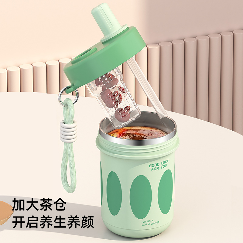 高颜値304ステンレス茶水分離ストローカップ茶漏れカップオフィス大容量保温コーヒーカッププレゼント