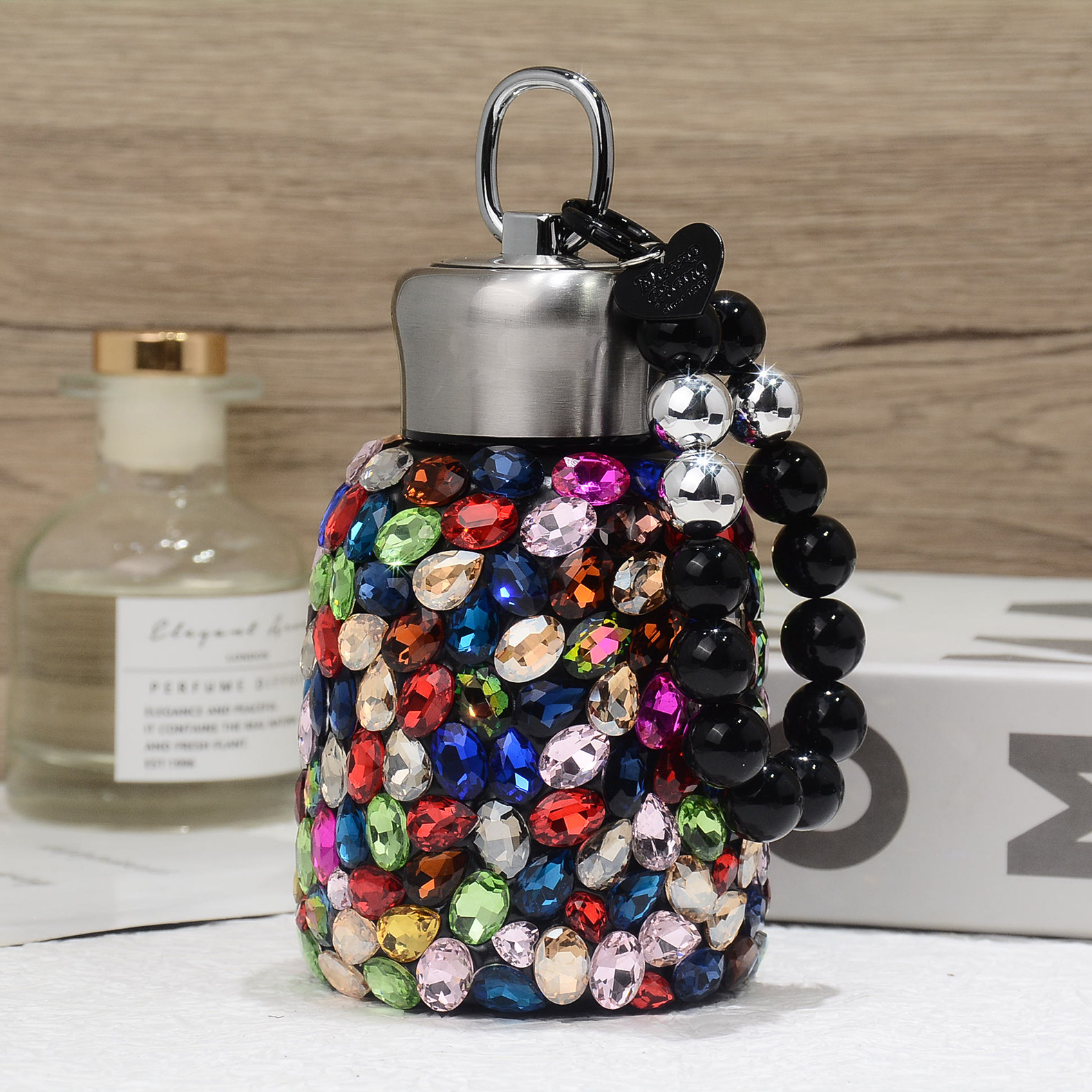 带钻水晶保温杯高档大肚杯女生高颜值不锈钢珍珠手提杯镶钻水杯