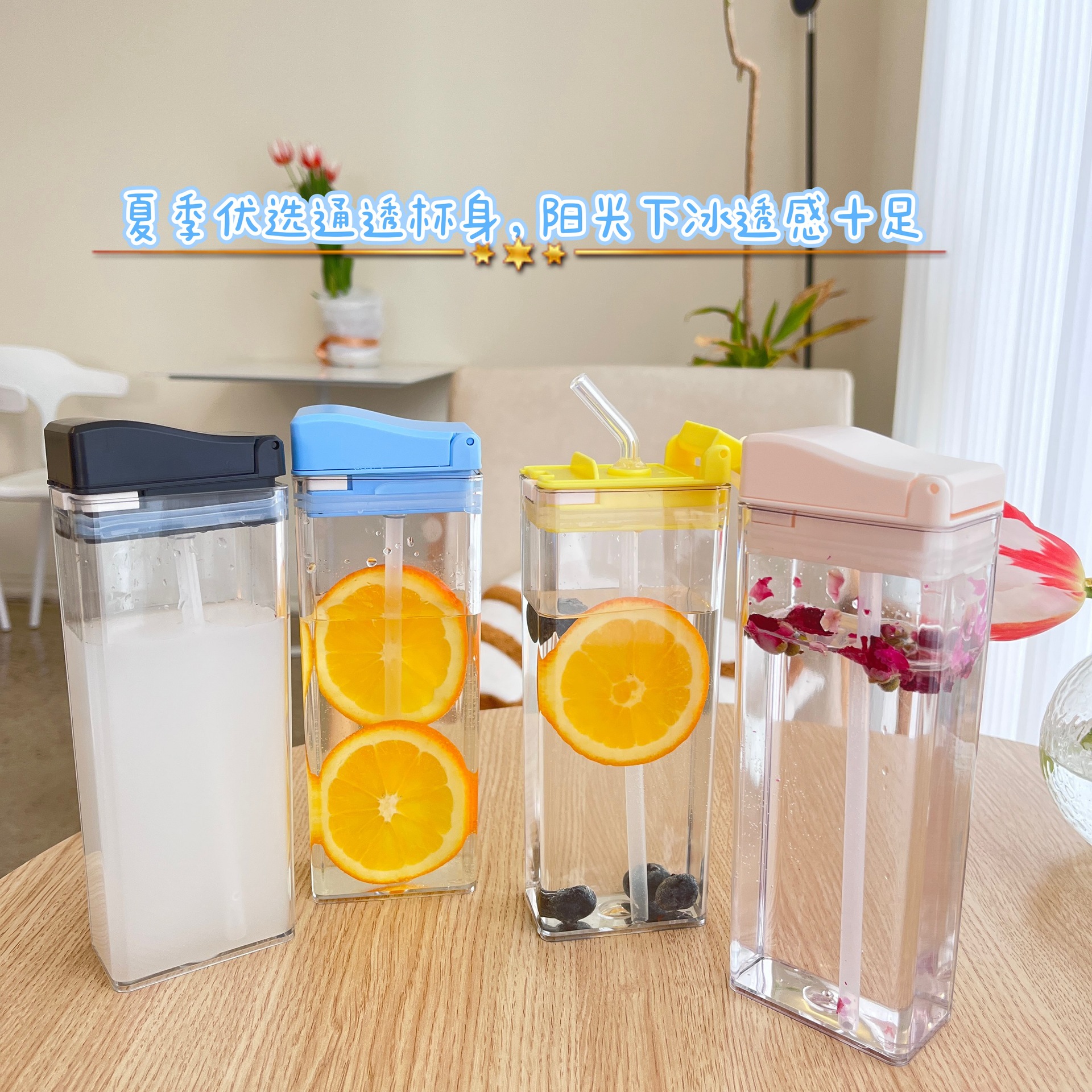 カップネット赤フラット携帯ケース透明カップ女子高颜値ストロー付き長方形コーヒーカップ